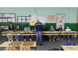 Да подсетимо, симултанка је игра у шаху где један играч (обично мајстор) игра одједном против више играча (у нашем случају осам). Постоје три облика симултанке у шаху: 1. Један играч игра против више играча тако што се креће од табле до табле и сваки пут повуче по потез. 2. Један играч игра против више играча на већем броју табли, при чему нови играчи седају на табле оних који су поражени. 3. Алтернативна симултанка, у којој два играча играју с више противника тако што наизменично вуку потезе. Правила симултанке: Шаховске табле у сали постављају се најчешће у облику потковице. Мајстор има право да врати потез док не повуче потез на следећој табли, док играч мора повући потез кад мајстор дође до његовог стола. Такође, забрањено је да играч додирује фигуре кад мајстор није присутан. Обично мајстор има све беле фигуре, али то може бити предмет договора (код нас је било пола-пола). На симултанкама се обично не користе шаховски сатови. Симултанка је успела ако мајстор реши у своју корист већину партија. На жалост школске екипе, то се десило и на нашој симултанци. Чланови шаховске секције |