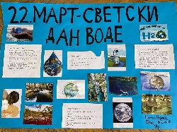 До 2025. године две трећине човечанства осетиће озбиљан недостатак воде. Процене стручњака кажу да око 1,1 милијарди људи нема приступ пијаћој води, а 2,5 милијарди нема обезбеђене елементарне санитарне услове. Шест хиљада деце млађе од пет година сваког дана умире од болести проузрокованих загађеном водом, а више од пет милиона људи годишње, што је десет пута више него број погинулих у свим ратовима годишње на свету. Хвала наставници Драгани Арсенијевић, и нашим ученицима, на дивним плакатима, направљеним у част овог дана. |