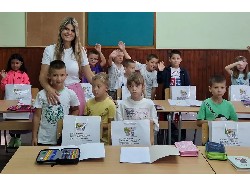 Начелница одељења друштвених делатности, госпођа Ивана Ненадић, нас је приликом посете школи обрадовала комплетима уџбеника, школским прибором и оним што деца највише воле - слаткишима.